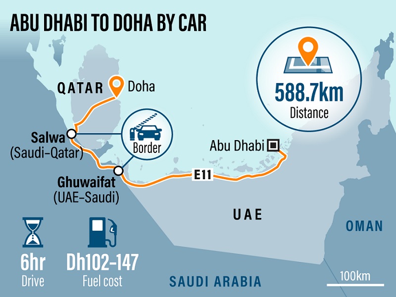 This is where long-term car rentals shift from a luxury to a logistical necessity. The GCC road network is among the most developed in the world. The drive from Dubai to Muscat, Oman, is approximately 4.5 hours via the Hili Border. The drive from Dubai to Dammam, Saudi Arabia, is roughly 6 hours. While airspace closes, land borders in the GCC have largely remained open for civilian transit, provided travelers have the correct visas and documentation.
